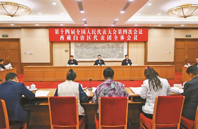 3月11日,西藏代表团举行全体会议,继续审议全国人大常委会工作报告、最高人民法院工作报告、最高人民检察院工作报告,审议关于政府工作报告、“十五五”规划纲要、年度计划、年度预算的决议草案。
