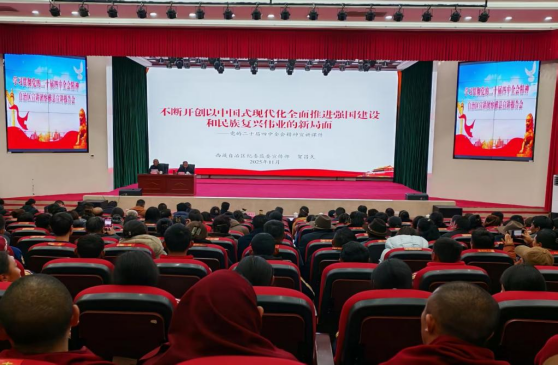 为深入学习贯彻党的二十届四中全会精神,11月20日,自治区宣讲团在察雅县举行宣讲报告会,报告会由自治区纪委监委宣传部部长贺昌久主讲,县委书记其珠多吉主持。
