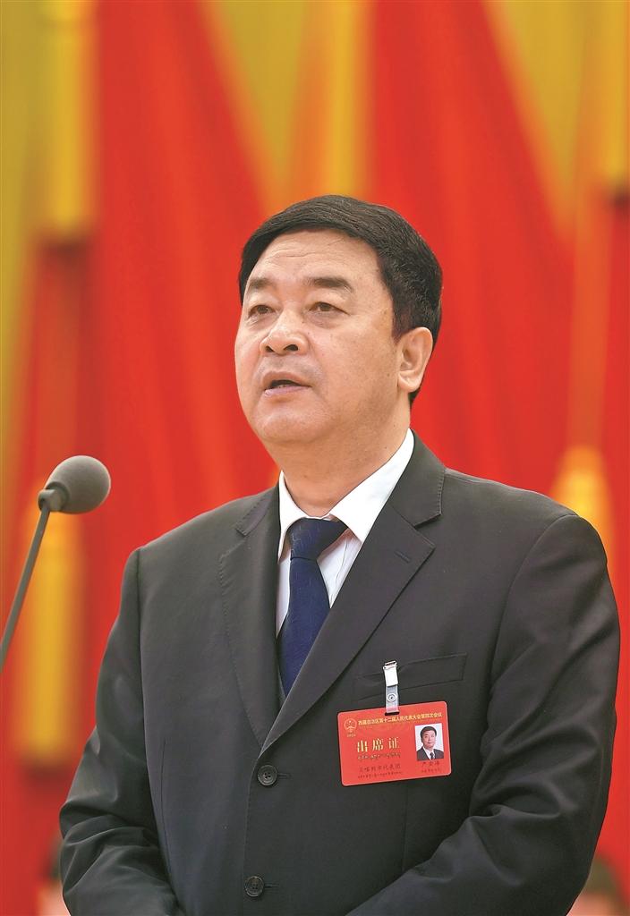 西藏自治区第十二届人民代表大会第四次会议31日上午在拉萨开幕。大会主席团常务主席、执行主席严金海主持开幕会议。平措旺堆 摄