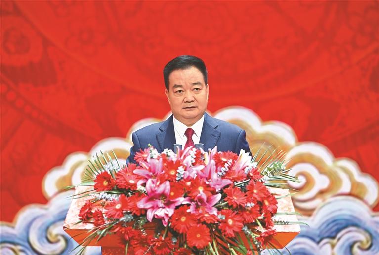 二月十二日下午,西藏自治区二〇二六年春节、藏历新年团拜会在拉萨举行。自治区党委书记王君正致辞。本报记者 旦增西旦 摄