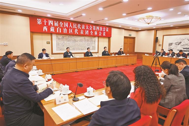 3月7日,西藏代表团举行全体会议,传达学习习近平总书记在看望参加全国政协十四届四次会议的农工党、九三学社、医药卫生界、社会福利和社会保障界委员并参加联组会时的重要讲话精神,继续审议政府工作报告,审查计划报告和草案、预算报告和草案。