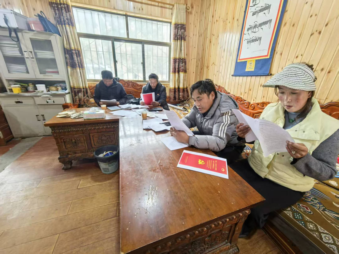 11月2日,政协委员白玛江培在香迁村村委会学习党的二十届四中全会精神。