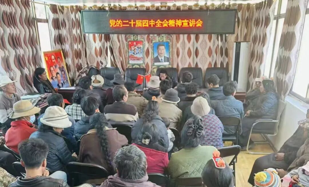 11月18日,政协党组成员、办公室主任仁青曲珍深入岗色乡比仓村开展党的二十届四中全会精神宣传教育活动。