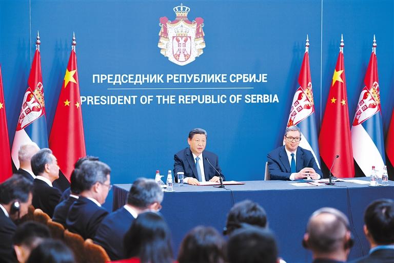 ——我们共同宣布构建新时代中塞命运共同体,开启中塞关系历史新篇章。8年前,塞尔维亚成为中国在中东欧地区首个全面战略伙伴。今天,塞尔维亚又成为首个同中国共同构建命运共同体的欧洲国家,充分体现了中塞关系的战略性、特殊性和高水平。
