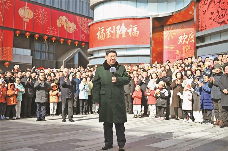 中华民族传统节日春节即将到来之际,中共中央总书记、国家主席、中央军委主席习近平在北京考察并看望慰问基层干部群众,向全国各族人民和香港同胞、澳门同胞、台湾同胞、海外侨胞拜年!祝愿海内外中华儿女在农历马年龙马精神、身体健康、事业有成、阖家幸福!祝愿伟大祖国山河锦绣、风调雨顺、繁荣昌盛、国泰民安!