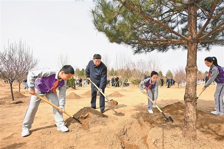 中共中央总书记、国家主席、中央军委主席习近平30日上午在参加首都义务植树活动时强调,良好生态人人共享,也需要合力共建。要组织动员全社会广泛参与植树造林,为山川大地增添锦绣,让中国式现代化的底色更加亮丽。